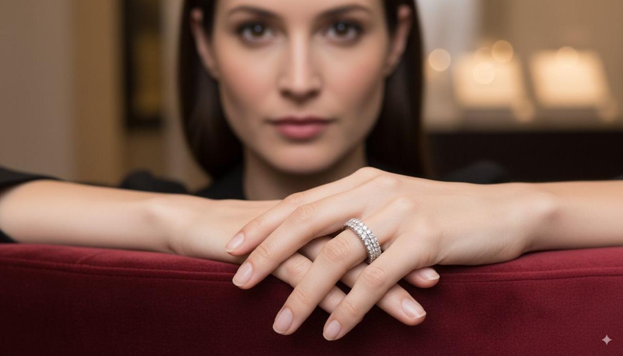 Anillo cintillo doble en platino con 26 diamantes de 0.02 cts -